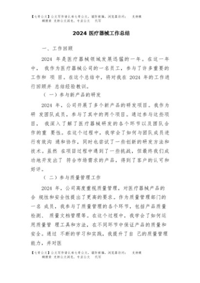 / 【七哥公文】2025年:2024医疗器械工作总结+更多免费公文+VX:QiGeGongWen2024