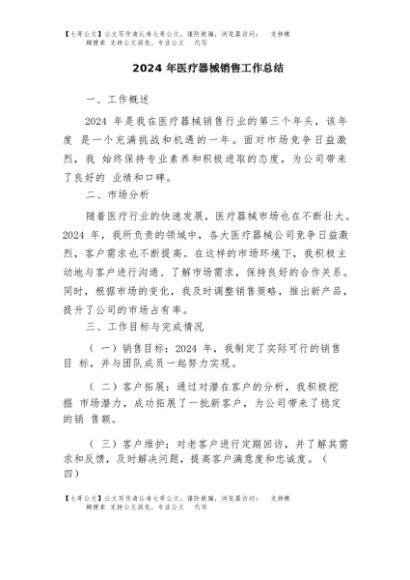 / 【七哥公文】2025年:2024年医疗器械销售工作总结+更多免费公文+VX:QiGeGongWen2024