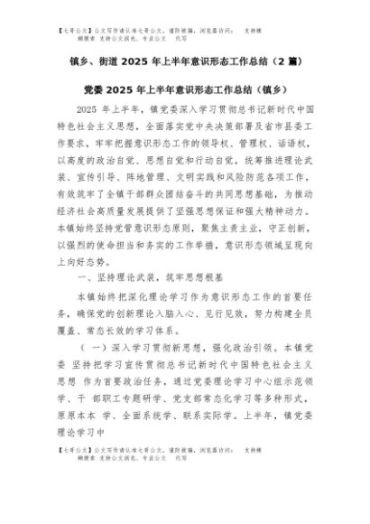 【七哥公文】2025年:(2篇)镇乡、街道2025年上半年意识形态工作总结+更多免费公文+VX:QiGeGongWen2024