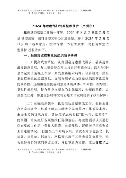 / 【七哥公文】2025年:2024年政府部门巡察整改报告(文明办)+更多免费公文+VX:QiGeGongWen2024