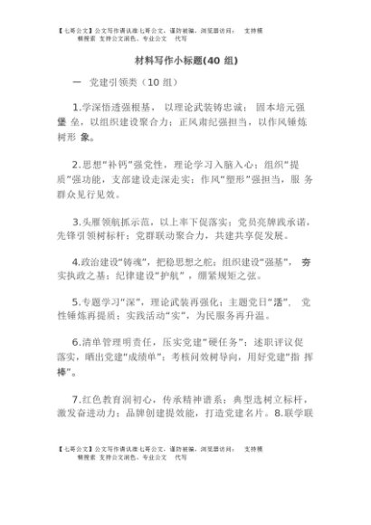 【七哥公文】2025年:(40组)材料写作小标题+更多免费公文+VX:QiGeGongWen2024
