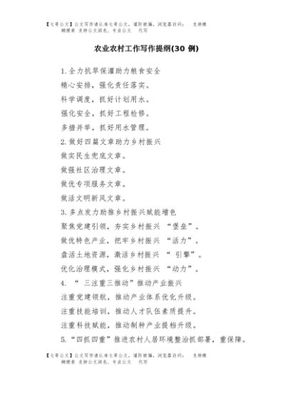 / 【七哥公文】2025年:(30例)农业农村工作写作提纲+更多免费公文+VX:QiGeGongWen2024