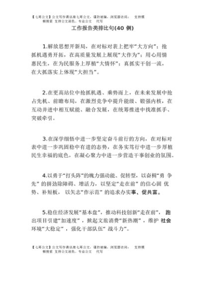 【七哥公文】2025年:(40例)工作报告类排比句+更多免费公文+VX:QiGeGongWen2024
