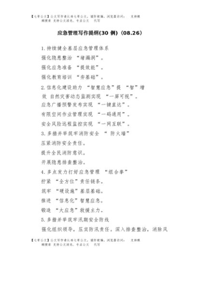 【七哥公文】2025年:(30例)应急管理写作提纲+更多免费公文+VX:QiGeGongWen2024