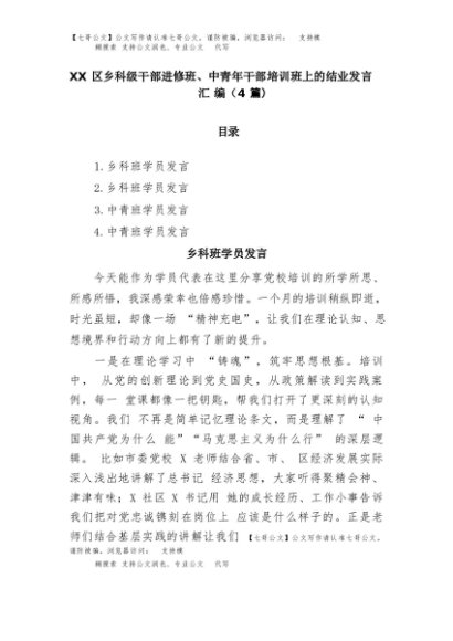 【七哥公文】2025年:(4篇)XX区乡科级干部进修班、中青年干部培训班上的结业发言汇编+更多免费公文+VX:QiGeGongWen2024