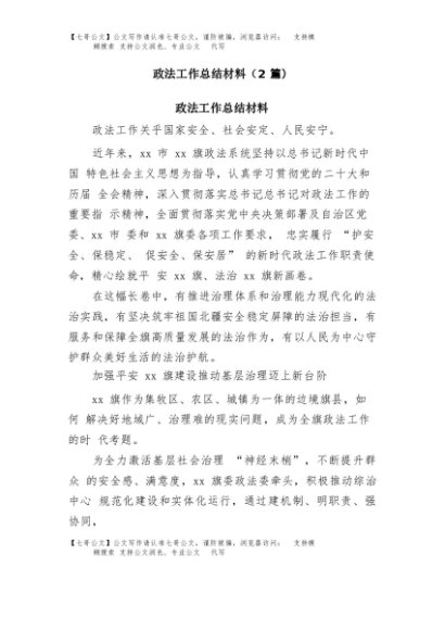/ 【七哥公文】2025年:(2篇)政法工作总结材料+更多免费公文+VX:QiGeGongWen2024