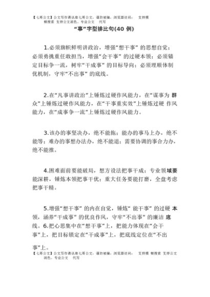 / 【七哥公文】2025年:(40例)“事”字型排比句2+更多免费公文+VX:QiGeGongWen2024