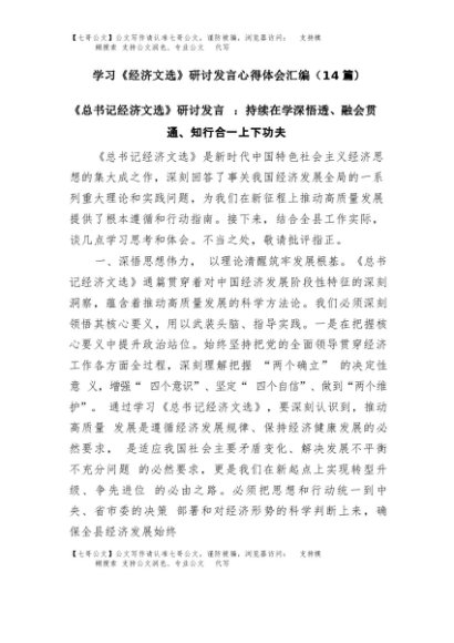 / 【七哥公文】2025年:(14篇)学习《经济文选》研讨发言心得体会汇编+更多免费公文+VX:QiGeGongWen2024