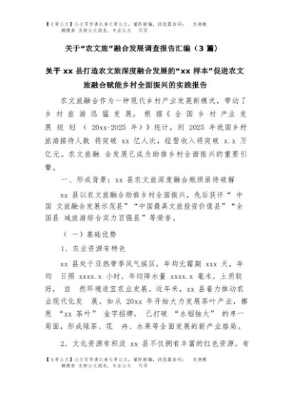 / 【七哥公文】2025年:(3篇)关于“农文旅”融合发展调查报告汇编+更多免费公文+VX:QiGeGongWen2024