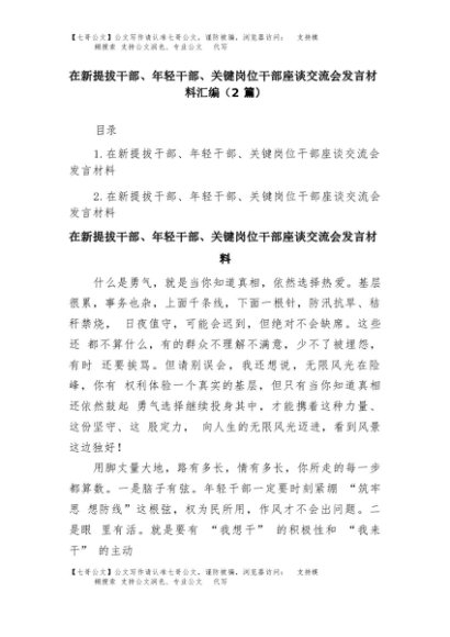 【七哥公文】2025年:(2篇)在新提拔干部、年轻干部、关键岗位干部座谈交流会发言材料汇编+更多免费公文+VX:QiGeGongWen2024