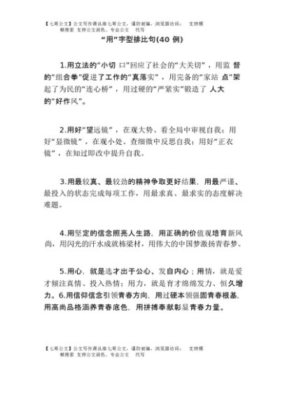 【七哥公文】2025年:(40例)“用”字型排比句+更多免费公文+VX:QiGeGongWen2024