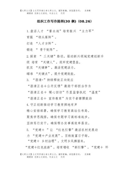 【七哥公文】2025年:(30例)组织工作写作提纲(08.26)+更多免费公文+VX:QiGeGongWen2024