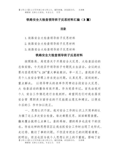 / 【七哥公文】2025年:(3篇)铁路安全大检查领导班子反思材料汇编+更多免费公文+VX:QiGeGongWen2024
