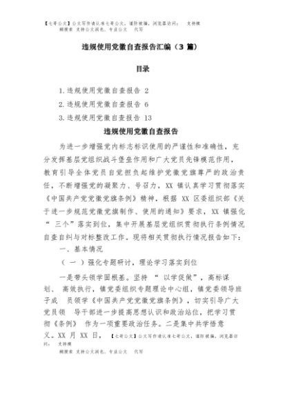 / 【七哥公文】2025年:(3篇)违规使用党徽自查报告汇编+更多免费公文+VX:QiGeGongWen2024