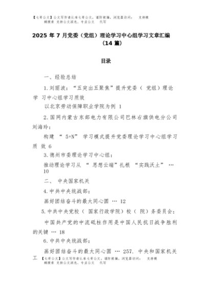 【七哥公文】2025年:(14篇)2025年7月党委(党组)理论学习中心组学习文章汇编+更多免费公文+VX:QiGeGongWen2024