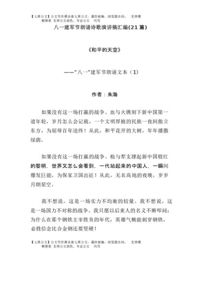 【七哥公文】2025年:(21篇)八一建军节朗诵诗歌演讲稿汇编+更多免费公文+VX:QiGeGongWen2024