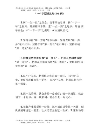 【七哥公文】2025年:(40例)“一”字型排比句2+更多免费公文+VX:QiGeGongWen2024
