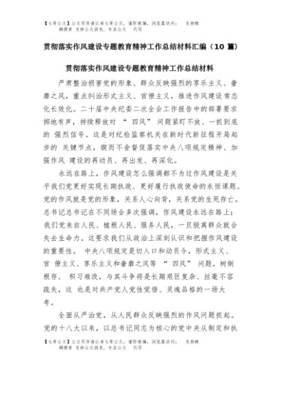 【七哥公文】2025年:(10篇)贯彻落实作风建设专题教育精神工作总结材料汇编+更多免费公文+VX:QiGeGongWen2024