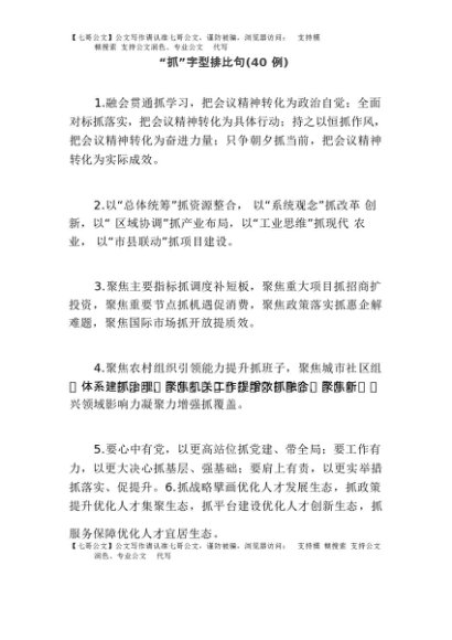【七哥公文】2025年:(40例)“抓”字型排比句2+更多免费公文+VX:QiGeGongWen2024