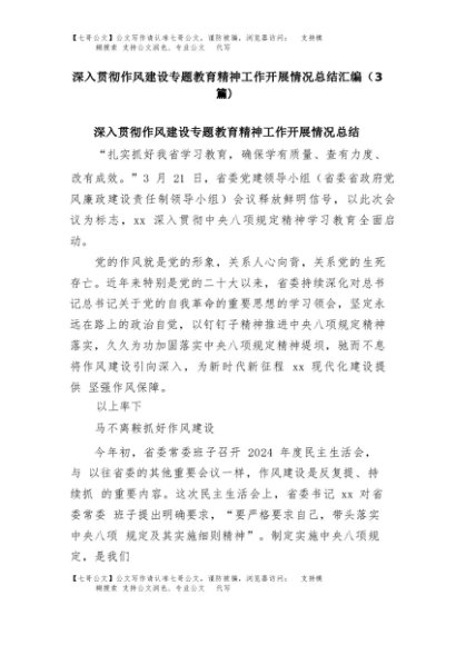 【七哥公文】2025年:(3篇)深入贯彻作风建设专题教育精神工作开展情况总结汇编+更多免费公文+VX:QiGeGongWen2024