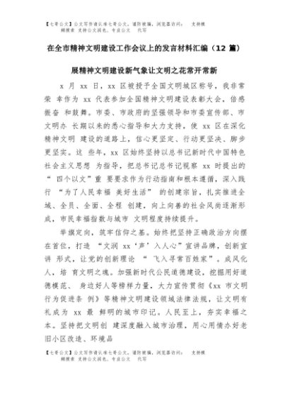 【七哥公文】2025年:(12篇)在全市精神文明建设工作会议上的发言材料汇编+更多免费公文+VX:QiGeGongWen2024
