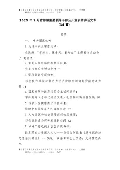 【七哥公文】2025年:(34篇)2025年7月省部级主要领导干部公开发表的讲话文章+更多免费公文+VX:QiGeGongWen2024
