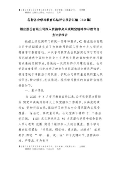/ 【七哥公文】2025年:(50篇)各行各业学习教育总结评估报告汇编+更多免费公文+VX:QiGeGongWen2024