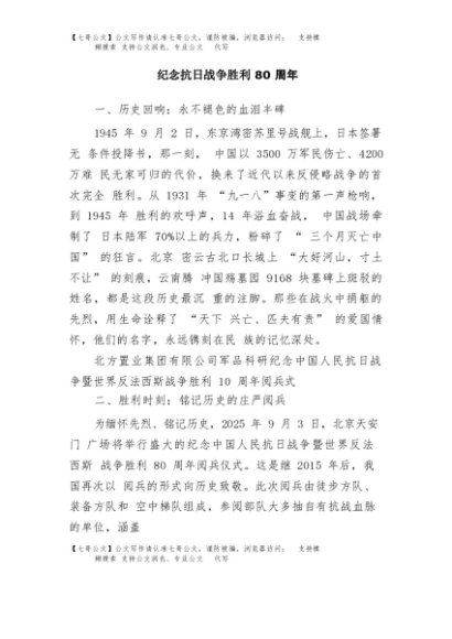 【七哥公文】2025年:(党课PPT+讲稿)纪念抗日战争胜利80周年word+更多免费公文+VX:QiGeGongWen2024