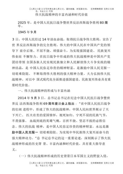 【七哥公文】2025年:(党课PPT+讲稿) 伟大抗战精神的丰富内涵和时代价值WORD+更多免费公文+VX:QiGeGongWen2024