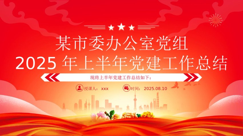 【七哥公文】2025年:(党课PPT+讲稿)某市委办公室党组2025年上半年党建工作总结ppt+更多免费公文+VX:QiGeGongWen2024