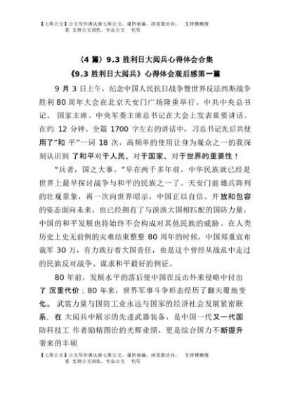 / 【七哥公文】2025年:(4篇)9.3胜利日大阅兵心得体会合集+更多免费公文+VX:QiGeGongWen2024