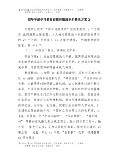 / 【七哥公文】2025年:领导干部学习教育查摆问题清单和整改方案2+更多免费公文+VX:QiGeGongWen2024
