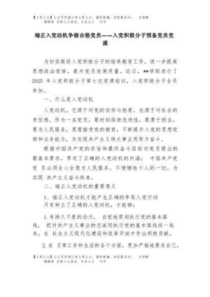 【七哥公文】2025年:(党课PPT+讲稿)入党积极分子党课课件:端正入党动机 争做合格党员word+更多免费公文+VX:QiGeGongWen2024