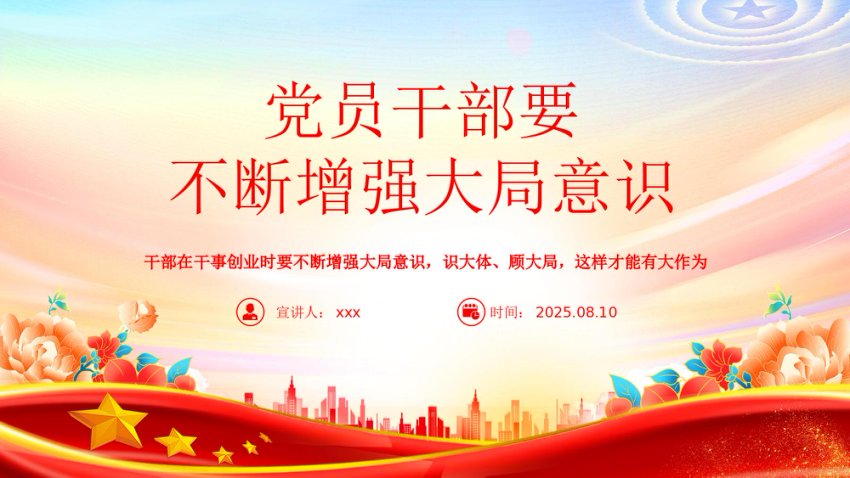 【七哥公文】2025年:(党课PPT+讲稿)党员干部要不断增强大局意识ppt+更多免费公文+VX:QiGeGongWen2024