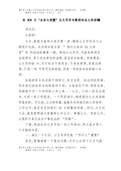 【七哥公文】2025年:(党课PPT+讲稿)在XX乡“业务大讲堂”公文写作专题培训会上的讲稿word+更多免费公文+VX:QiGeGongWen2024