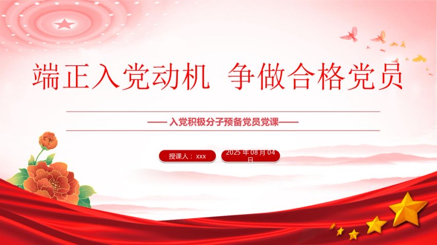 【七哥公文】2025年:(党课PPT+讲稿)入党积极分子党课课件:端正入党动机 争做合格党员ppt+更多免费公文+VX:QiGeGongWen2024