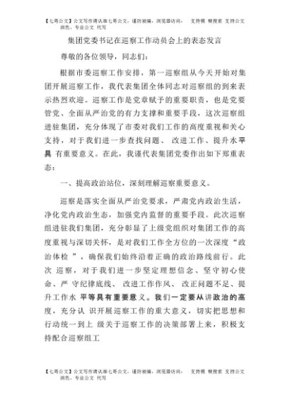 / 【七哥公文】2025年:集团党委书记在巡察工作动员会上的表态发言+更多免费公文+VX:QiGeGongWen2024