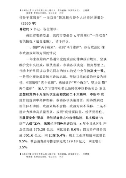 【七哥公文】2025年:领导干部履行“一岗双责”情况报告暨个人述责述廉报告(3560字)+更多免费公文+VX:QiGeGongWen2024