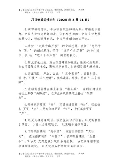 / 【七哥公文】2025年:项目建设类排比句(2025年8月21日)+更多免费公文+VX:QiGeGongWen2024