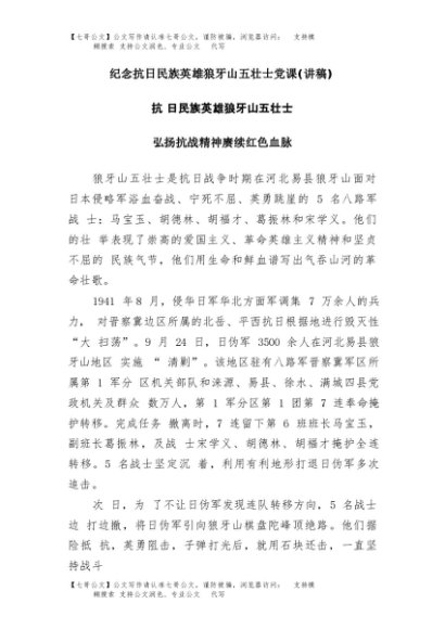 【七哥公文】2025年:(党课PPT+讲稿)抗日民族英雄狼牙山五壮士word+更多免费公文+VX:QiGeGongWen2024