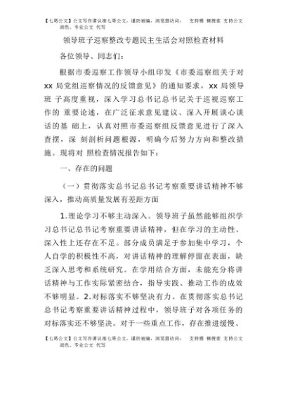 / 【七哥公文】2025年:领导班子巡察整改专题民主生活会对照检查材料+更多免费公文+VX:QiGeGongWen2024