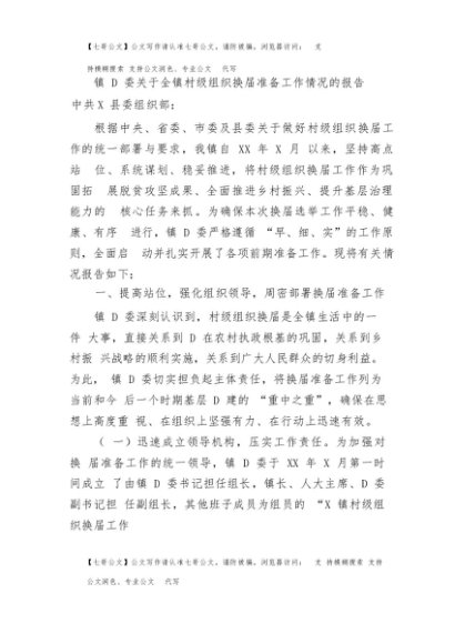 / 【七哥公文】2025年:镇党委关于全镇村级组织换届准备工作情况的报告+更多免费公文+VX:QiGeGongWen2024
