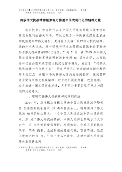 【七哥公文】2025年:(党课PPT+讲稿)传承伟大抗战精神凝聚奋力推进中国式现代化的精神力量word+更多免费公文+VX:QiGeGongWen2024