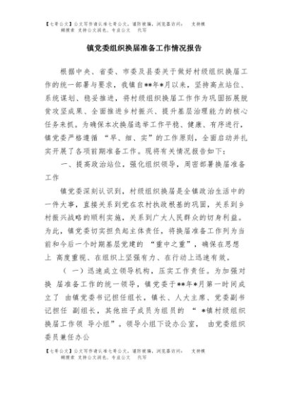 【七哥公文】2025年:镇党委组织换届准备工作情况报告+更多免费公文+VX:QiGeGongWen2024