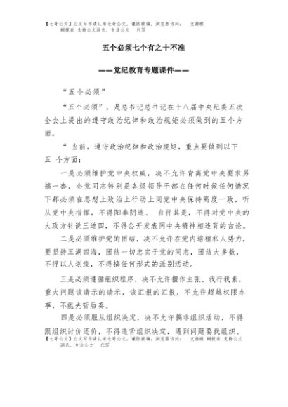 【七哥公文】2025年:(党课PPT+讲稿)五个必须 七个有之 十不准word+更多免费公文+VX:QiGeGongWen2024