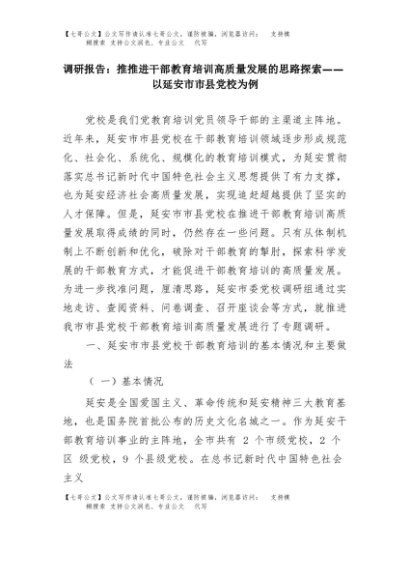 【七哥公文】2025年:调研报告:推推进干部教育培训高质量发展的思路探索——以延安市市县党校为例+更多免费公文+VX:QiGeGongWen2024
