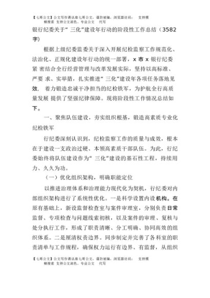 【七哥公文】2025年:银行纪委关于“三化”建设年行动的阶段性工作总结(3582字)+更多免费公文+VX:QiGeGongWen2024