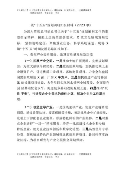 / 【七哥公文】2025年:镇“十五五”规划调研汇报材料(2723字)+更多免费公文+VX:QiGeGongWen2024