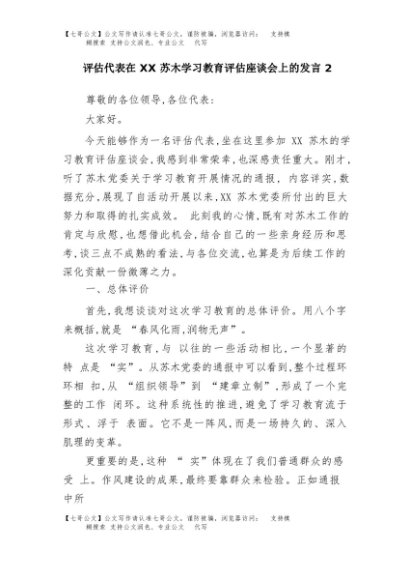 / 【七哥公文】2025年:评估代表在XX苏木学习教育评估座谈会上的发言2+更多免费公文+VX:QiGeGongWen2024