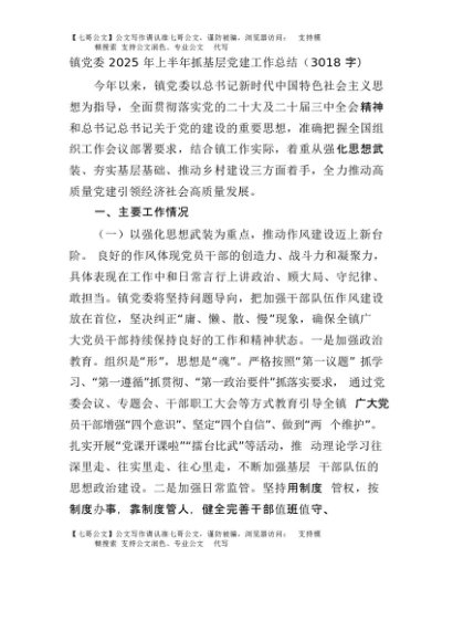 【七哥公文】2025年:镇党委2025年上半年抓基层党建工作总结(3018字)+更多免费公文+VX:QiGeGongWen2024
